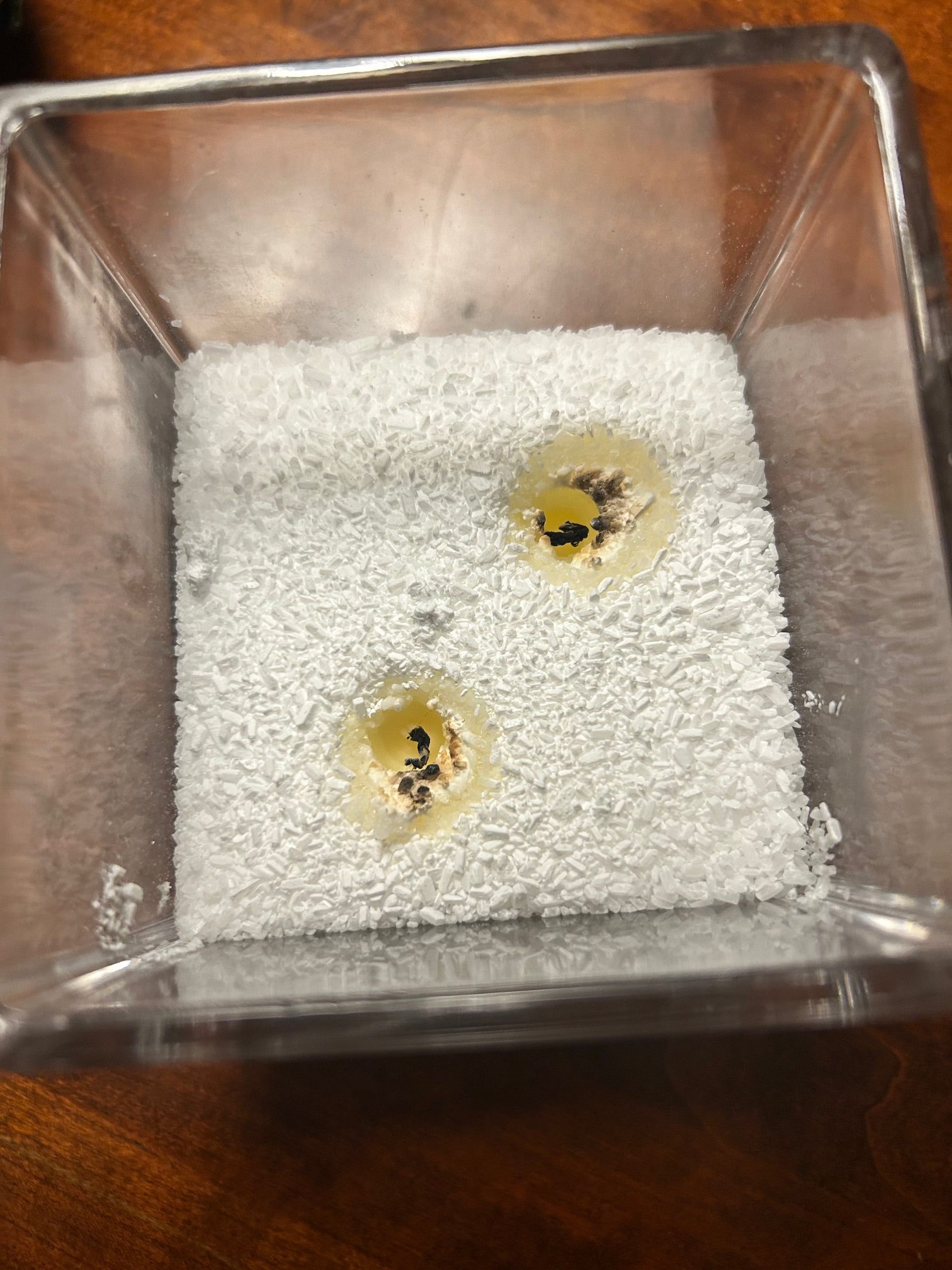 Try setting in a glass tray with an inch or so of epsom salt. They will burn right down and do it safely. See the picture below.